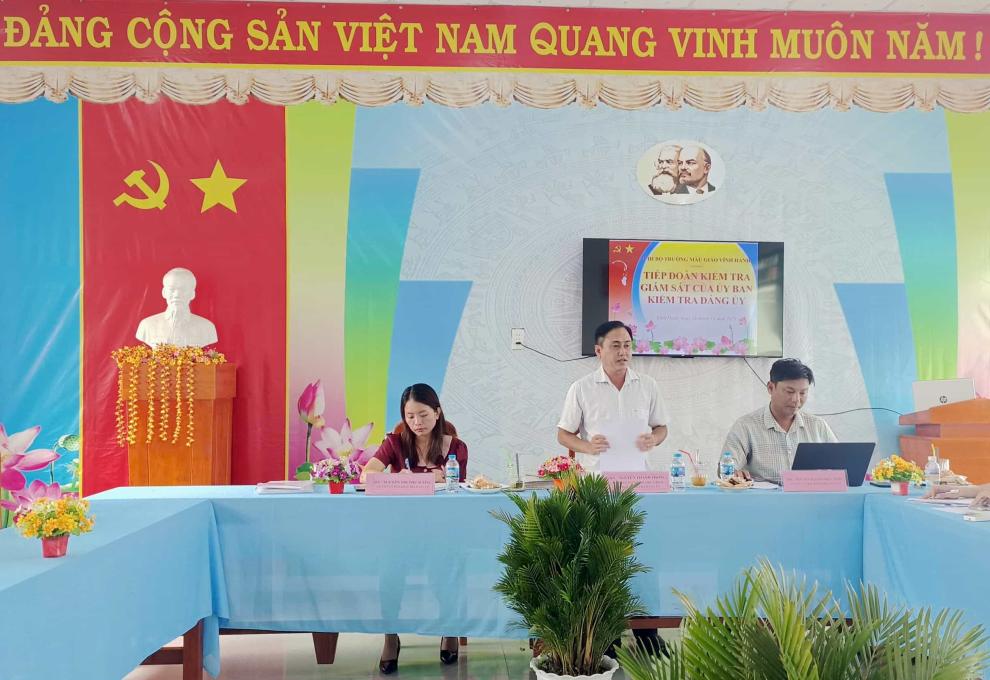 Mới đây, Tổ kiểm tra của Ủy ban Kiểm tra Đảng ủy xã Vĩnh Hanh đã có buổi giám sát Chi bộ Trường Mẫu giáo Vĩnh Hanh theo Kế hoạch giám sát ban hành kèm theo Quyết định số 04-QĐ/UBKTĐU ngày 06/10/2025 của Ủy ban Kiểm tra Đảng ủy xã Vĩnh Hanh về việc Giám sát Chi bộ Trường Mẫu giáo Vĩnh Hanh. Đến dự có đồng chí Nguyễn Thanh Phong - Phó Chủ nhiệm Ủy ban Kiểm tra Đảng ủy, Tổ trưởng Tổ giám sát. Đồng chí Tạ Thị Xuân - Bí thư Chi bộ Trường Mẫu giáo Vĩnh Hanh đã tiếp đoàn.