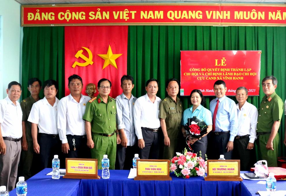 - 23/10/2025Ngày 22-10-2025, Công an xã Vĩnh Hanh tổ chức Lễ công bố Quyết định thành lập Chi hội và chỉ định lãnh đạo Chi hội Cựu Công an nhân dân xã Vĩnh Hanh. Đồng chí Thượng tá Đoàn Minh Đức - Ủy viên Ban Chấp hành Hội cựu Công an nhân dân tỉnh An Giang; Đồng chí Hồ Trường Huấn – Bí thư Đảng ủy, Chủ tịch HĐND xã Vĩnh Hanh; Đồng chí Nguyễn Văn Tài – Phó Chủ tịch UBND xã Vĩnh Hanh; Đồng chí Thượng tá Thái Văn Hậu - Trưởng Công an xã Vĩnh Hanh đã đến dự.
