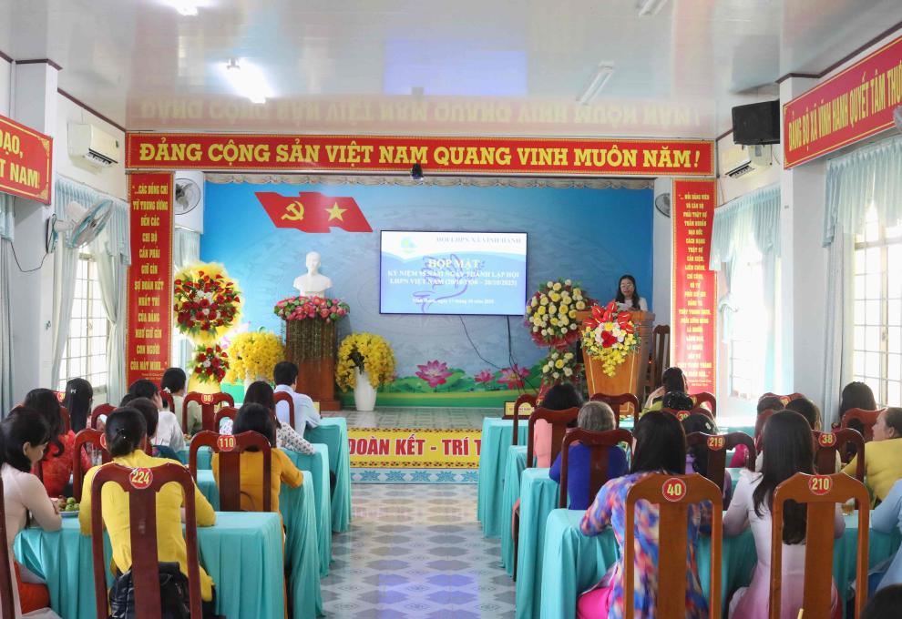 - 17/10/2025Ngày 17-10-2025, tại Hội trường Đảng ủy xã Vĩnh Hanh đã long trọng diễn ra buổi họp mặt kỷ niệm 95 năm Ngày thành lập Hội Liên hiệp Phụ nữ Việt Nam (20/10/1930 – 20/10/2025) và Ngày Phụ nữ Việt Nam (20-10). Đồng chí Hồ Trường Huấn – Bí thư Đảng ủy, Chủ tịch HĐND xã Vĩnh Hanh; Đồng chí Đoàn Đức Dịnh – Phó Bí thư Đảng ủy, Chủ tịch UBND xã Vĩnh Hanh; Đồng chí Nguyễn Thị Hoài Thanh – Trưởng Ban Xây dựng Đảng xã Vĩnh Hanh; Đồng chí Nguyễn Thị Thúy Kiều – Chủ tịch Ủy ban MTTQ Việt Nam xã Vĩnh Hanh; Đồng chí Trần Thị Diệu Hiền – Phó Chủ tịch Ủy Ban MTTQ Việt Nam xã, Chủ tịch Hội Liên hiệp Phụ nữ Việt Nam xã Vĩnh Hanh đã đến dự.