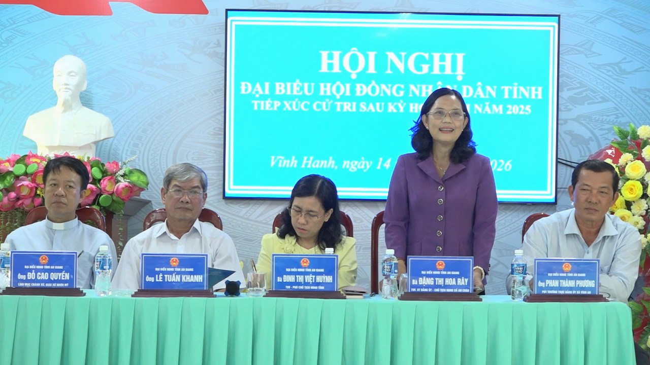 Ngày 14-01-2026, bà Đinh Thị Việt Huỳnh – Tỉnh ủy viên, Phó Chủ tịch HĐND tỉnh An Giang cùng Tổ đại biểu số 4 HĐND tỉnh đã có buổi tiếp xúc trên 70 bà con cử tri xã Vĩnh Hanh. Buổi tiếp xúc diễn ra trong khuôn khổ sau Kỳ họp thường lệ cuối năm của HĐND tỉnh.