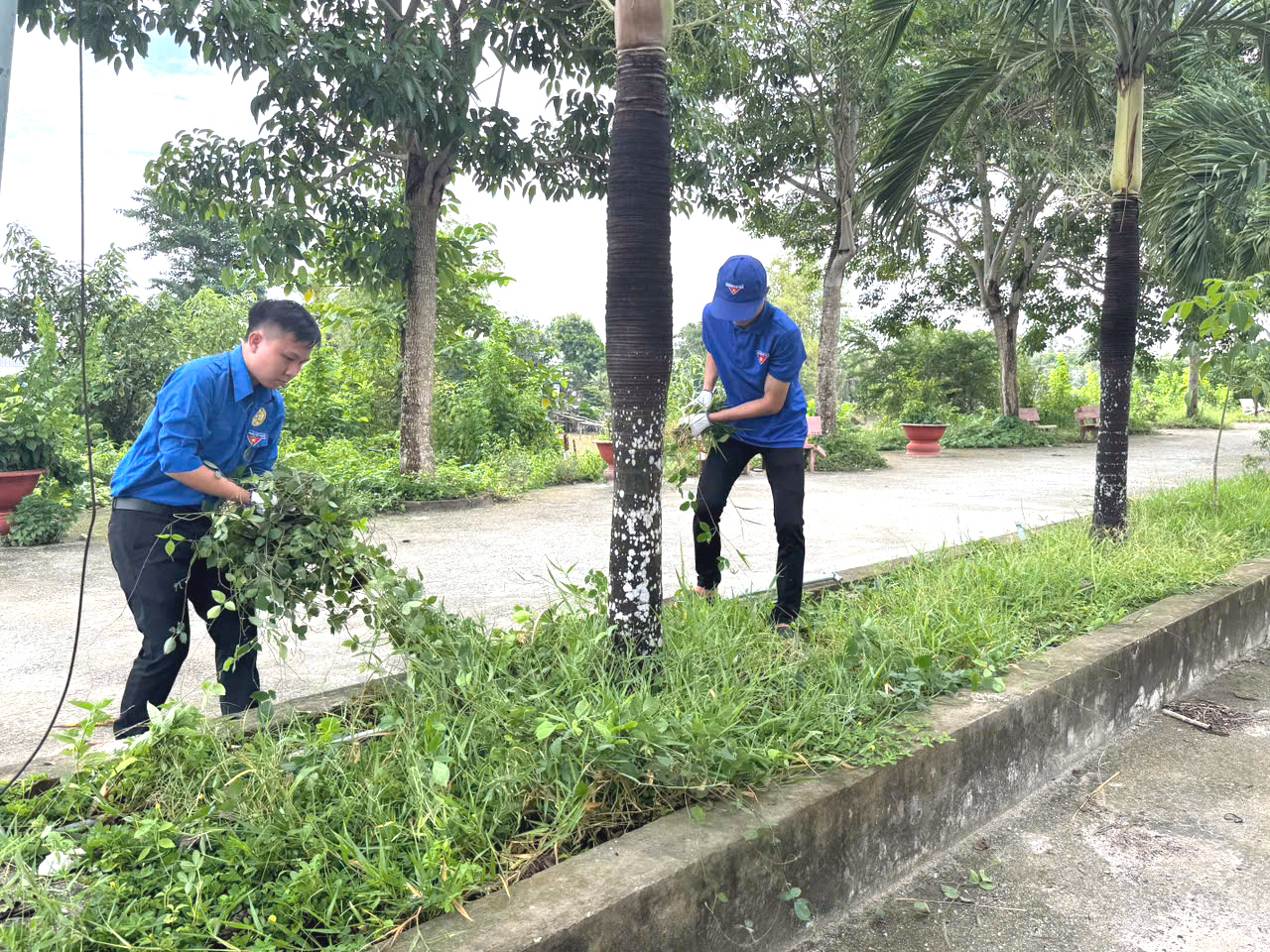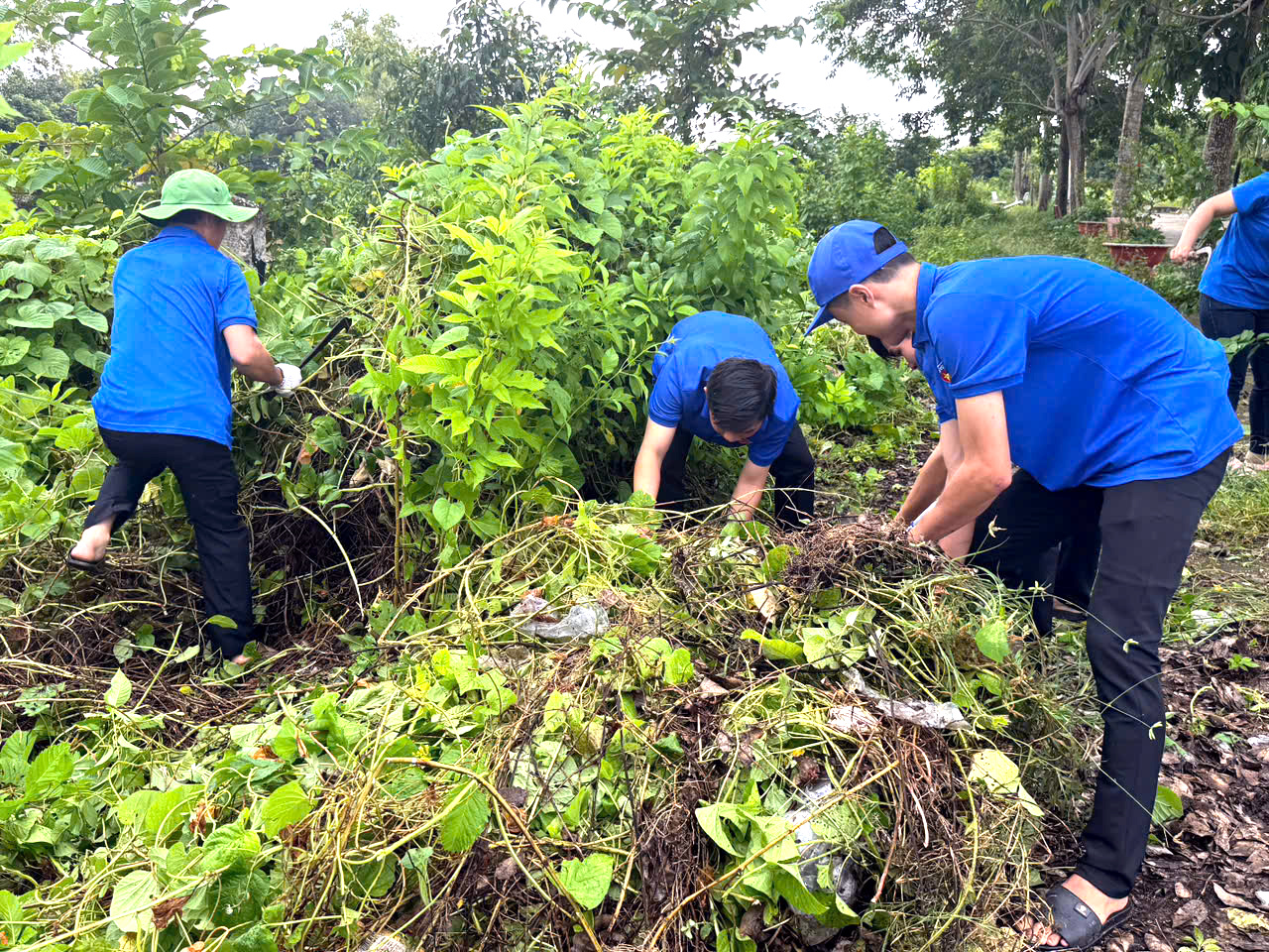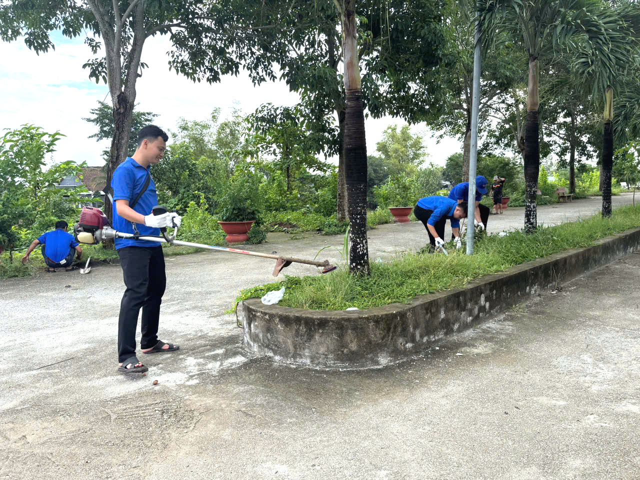 Đoàn Thanh niên xã Vĩnh Hanh tổ chức ra quân dọn dẹp vệ sinh công viên xã