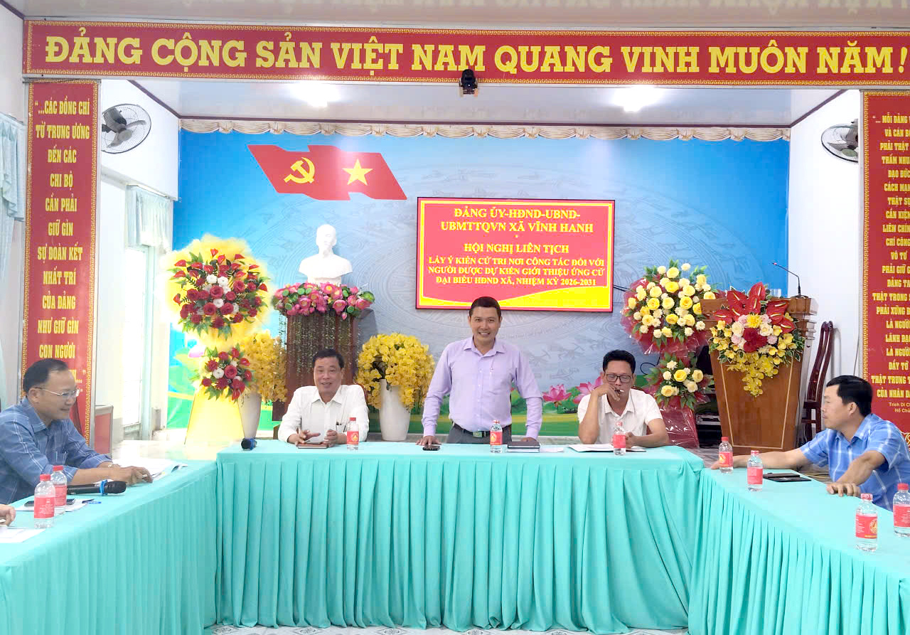 Nhằm đảm bảo đúng các bước hiệp thương, lựa chọn, giới thiệu người ứng cử Đại biểu HĐND, ngày 13-01-2026, Đảng ủy xã Vĩnh Hanh tổ chức Hội nghị thực hiện quy trình giới thiệu người ứng cử Đại biểu HĐND xã Vĩnh Hanh, nhiệm kỳ 2026 – 2031. Đồng chí Hồ Trường Huấn – Bí thư Đảng ủy, Chủ tịch HĐND xã Vĩnh Hanh chủ trì cuộc họp.