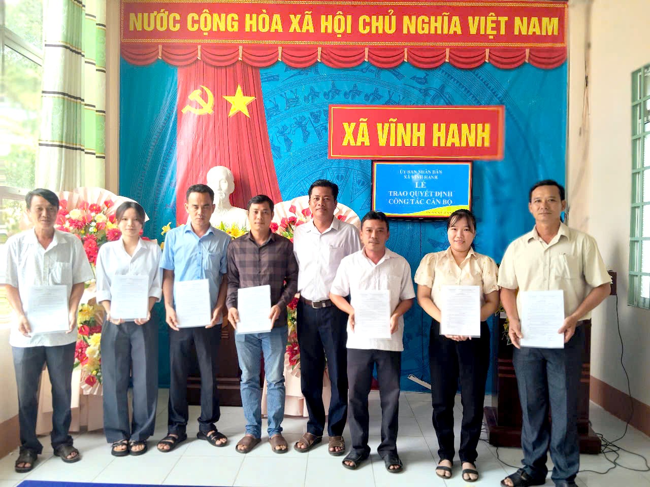 Theo đó, UBND xã Vĩnh Hanh đã trao Quyết định cho 30 công chức, viên chức, người hoạt động không chuyên trách, các trưởng ấp, phó trưởng ấp trên địa bàn xã.
