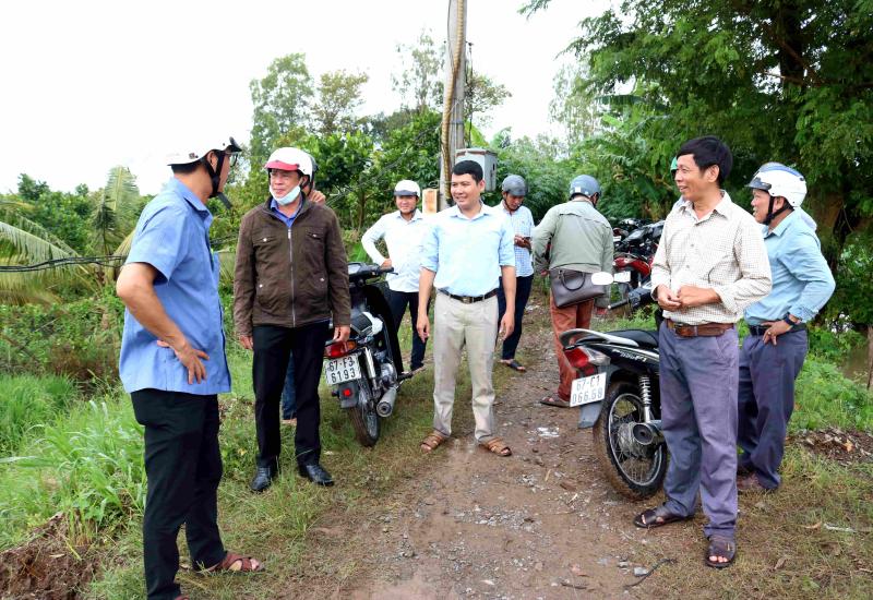 Bí thư Đảng ủy xã Vĩnh Hanh Hồ Trường Huấn kiểm tra các đoạn đê xung yếu trên địa bàn xã