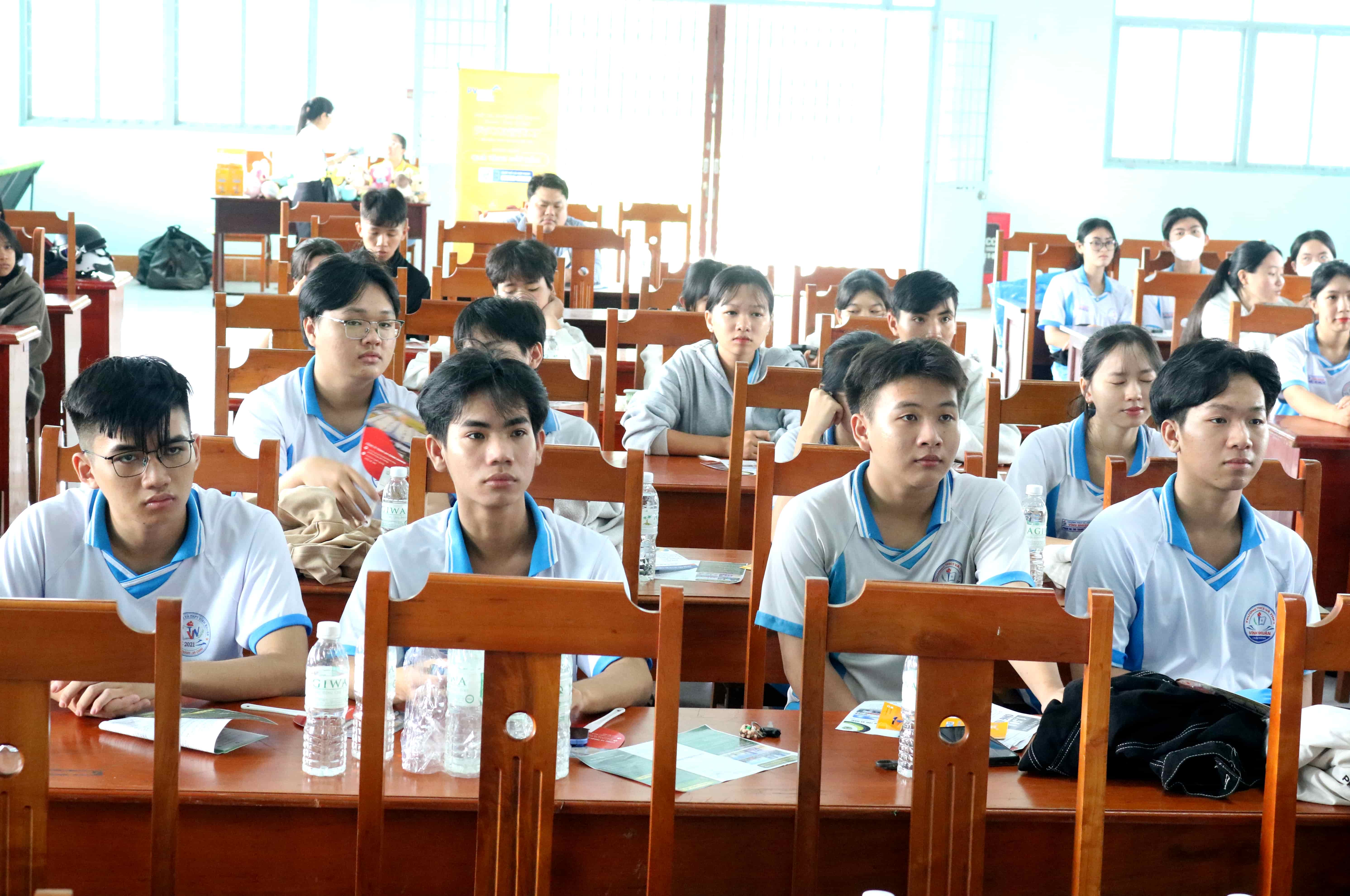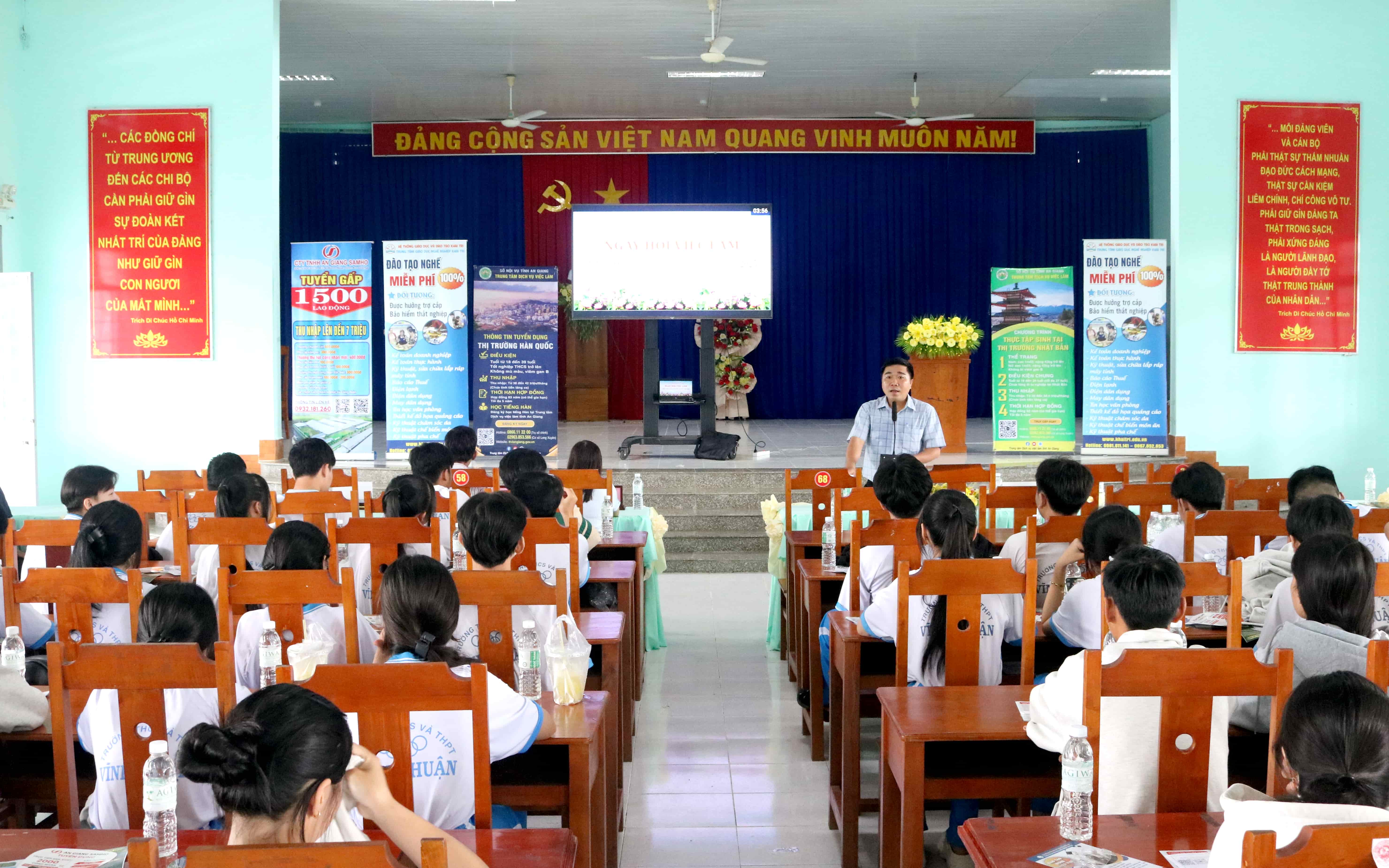 Những học sinh và người lao động được nghe đại diện Trung tâm Dịch vụ Việc làm tỉnh, các Trung tâm và Công ty thông tin mục đích, ý nghĩa của công tác đào tạo nghề, giải quyết việc làm; Thông tin tuyển dụng việc làm trong tỉnh và thị trường nước ngoài như: Nhật Bản, Hàn Quốc; Các chính sách bảo hiểm thất nghiệp, chương trình đào tạo nghề miễn phí, thực tế việc tuyển dụng tại các Công ty, Doanh nghiệp hiện nay…