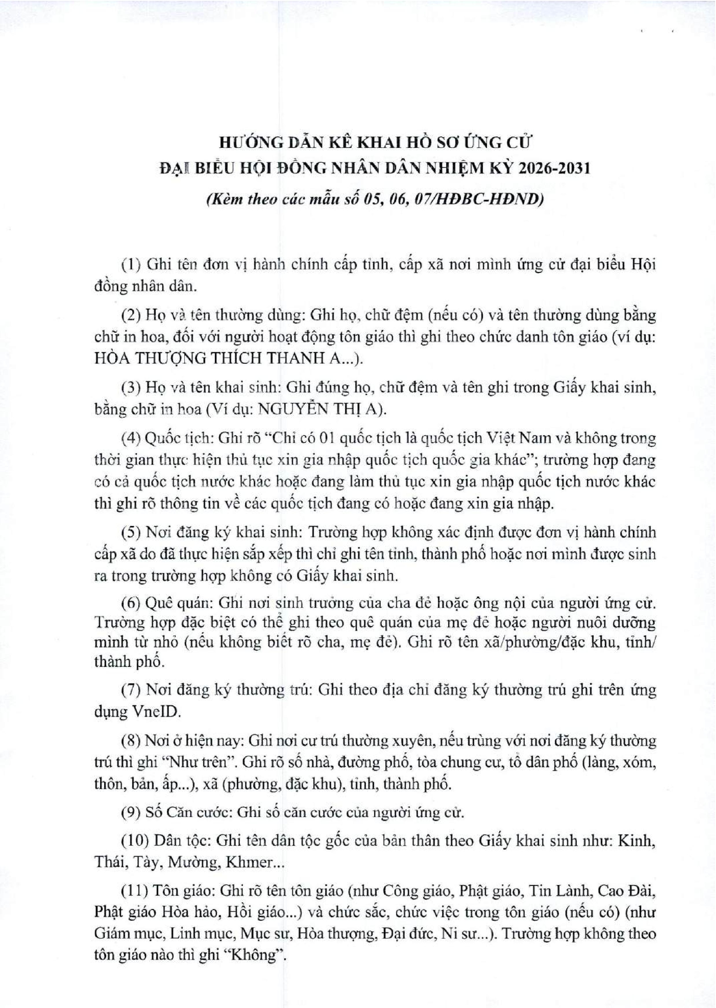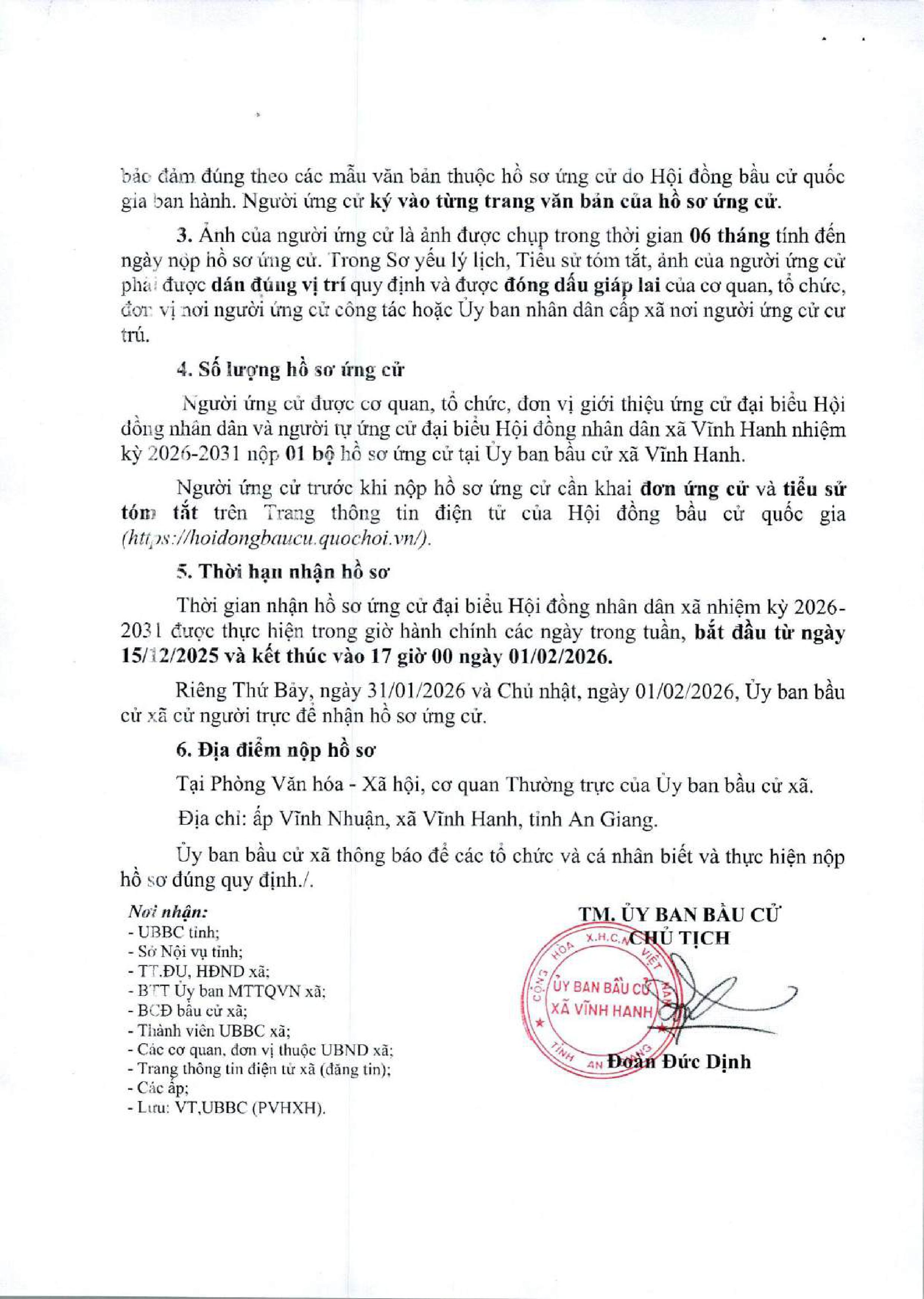 Thông báo về việc nộp hồ sơ ứng cử đại biểu Hội đồng nhân dân xã Vĩnh Hanh nhiệm kỳ 2026-2031