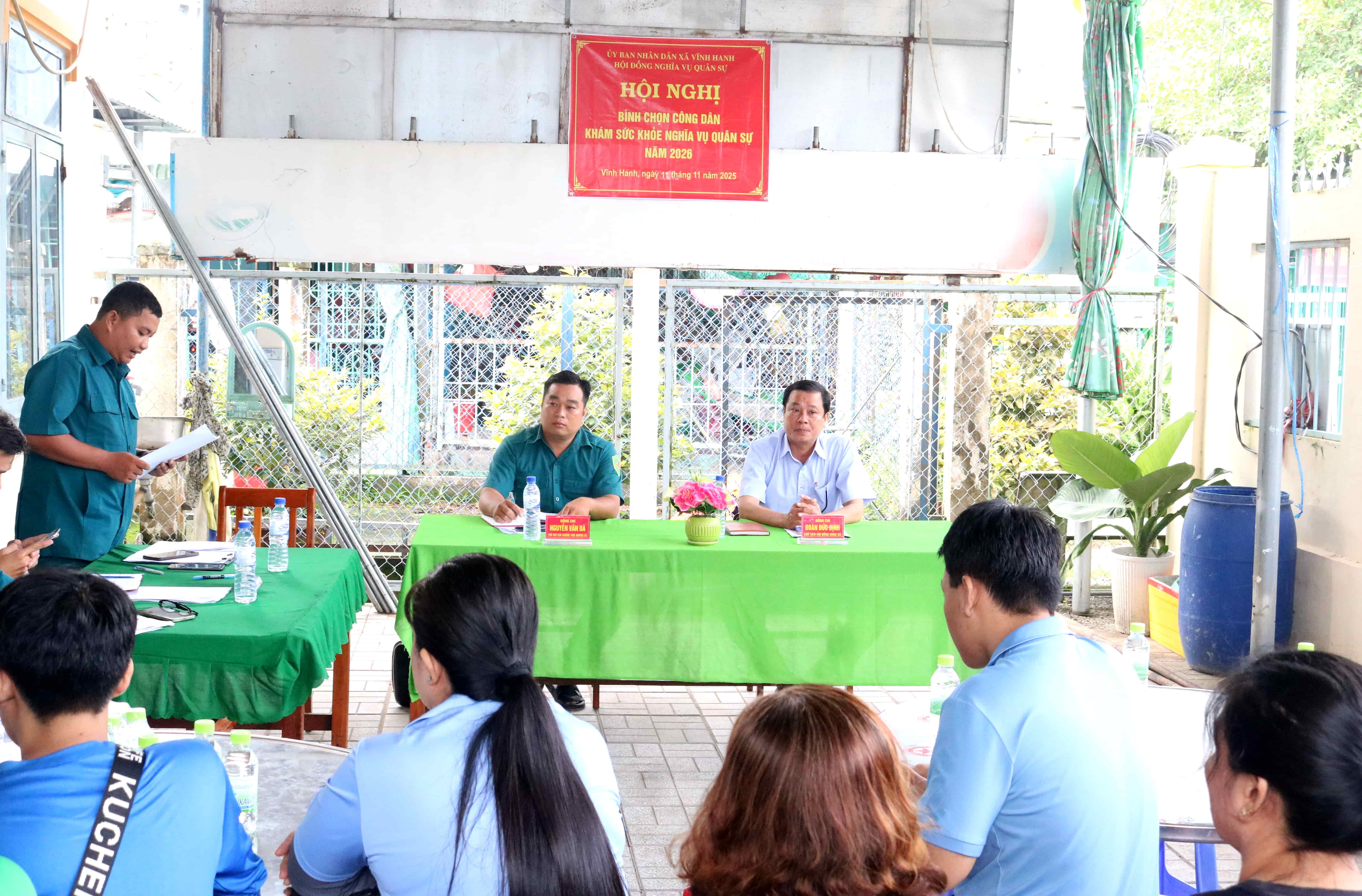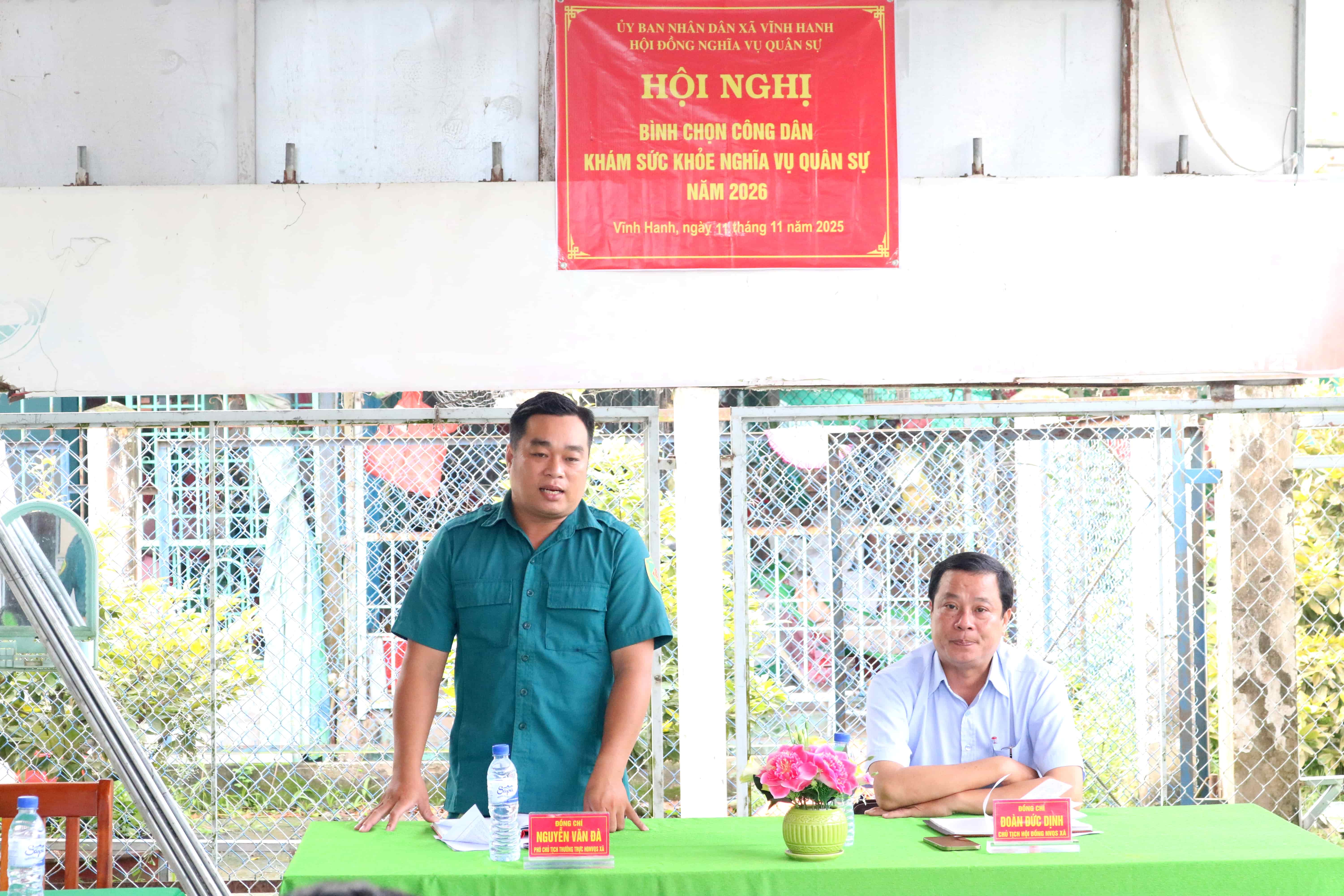 Từ ngày 05 đến ngày 11-11-2025, Tại các Ban ấp, Hội đồng Nghĩa vụ Quân sự xã Vĩnh Hanh tổ chức Hội nghị bình chọn công dân khám sức khỏe nghĩa vụ quân sự năm 2026. Đồng chí Đoàn Đức Dịnh – Phó Bí thư Đảng ủy, Chủ tịch UBND xã Vĩnh Hanh, Chủ tịch Hội đồng Nghĩa vụ Quân sự xã; Đồng chí Nguyễn Văn Đà – Chỉ huy trưởng Ban Chỉ huy Quân sự xã Vĩnh Hanh đã đến dự.