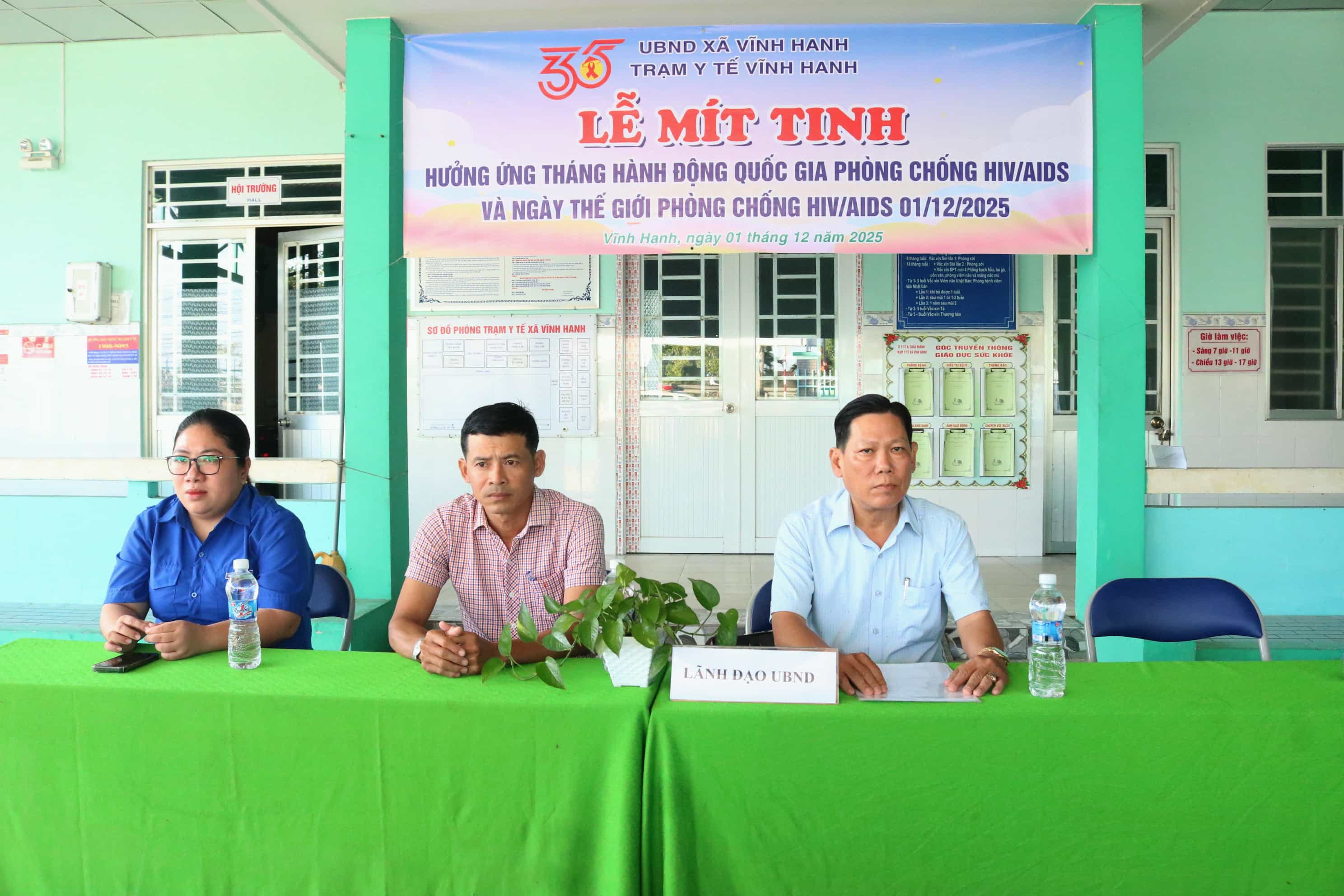 Ngày 01-12-2025, tại Trạm y tế Vĩnh Hanh, UBND xã Vĩnh Hanh tổ chức Lễ Mit-tinh hưởng ứng Tháng hành động quốc gia phòng, chống HIV/AIDS năm 2025. Ông Nguyễn Văn Tài – Phó Chủ tịch UBND xã Vĩnh Hanh; Cùng cán bộ y tế, đoàn viên, hội viên, lực lượng quân sự, công an và Nhân dân tham dự.