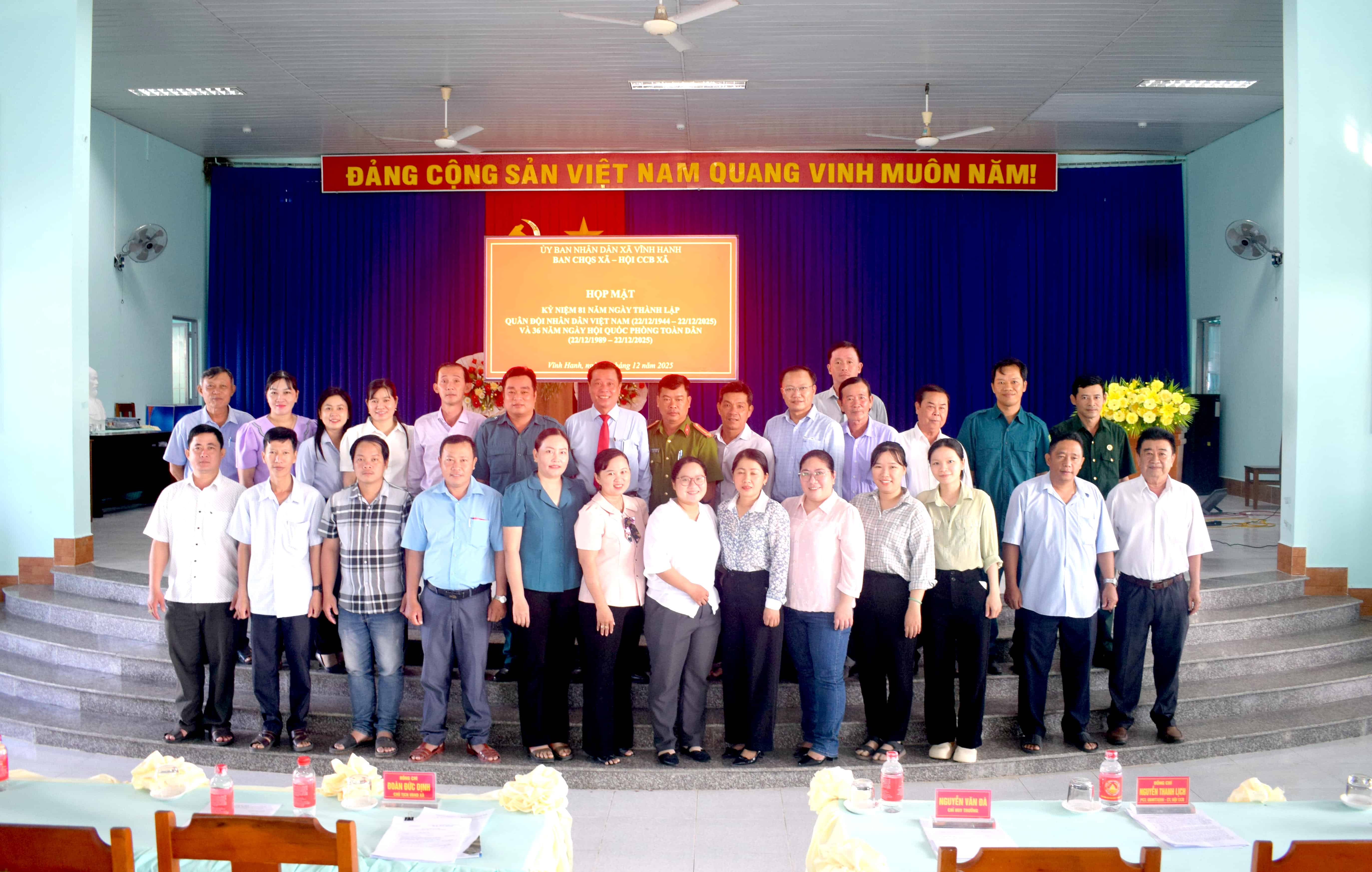 Ngày 22-12-2025, Ban Chỉ huy Quân sự xã Vĩnh Hanh phối hợp cùng Hội cựu Chiến binh địa phương tổ chức họp mặt kỷ niệm 81 năm Ngày thành lập Quân đội nhân dân Việt Nam (22/12/1944-22/12/2025) và 36 năm Ngày hội Quốc phòng toàn dân (22/12/1989-22/12/2025). Đến dự buổi họp mặt có đồng chí Đoàn Đức Dịnh – Phó Bí thư Đảng ủy, Chủ tịch UBND xã Vĩnh Hanh; Đồng chí Nguyễn Văn Đà - Ủy viên Ban Thường vụ Đảng ủy, Chỉ huy trưởng Ban Chỉ huy Quân sự xã Vĩnh Hanh; Đồng chí Nguyễn Thanh Lịch – Phó Chủ tịch Ủy ban MTTQ Việt Nam xã Vĩnh Hanh, Chủ tịch Hội cựu Chiến binh xã.