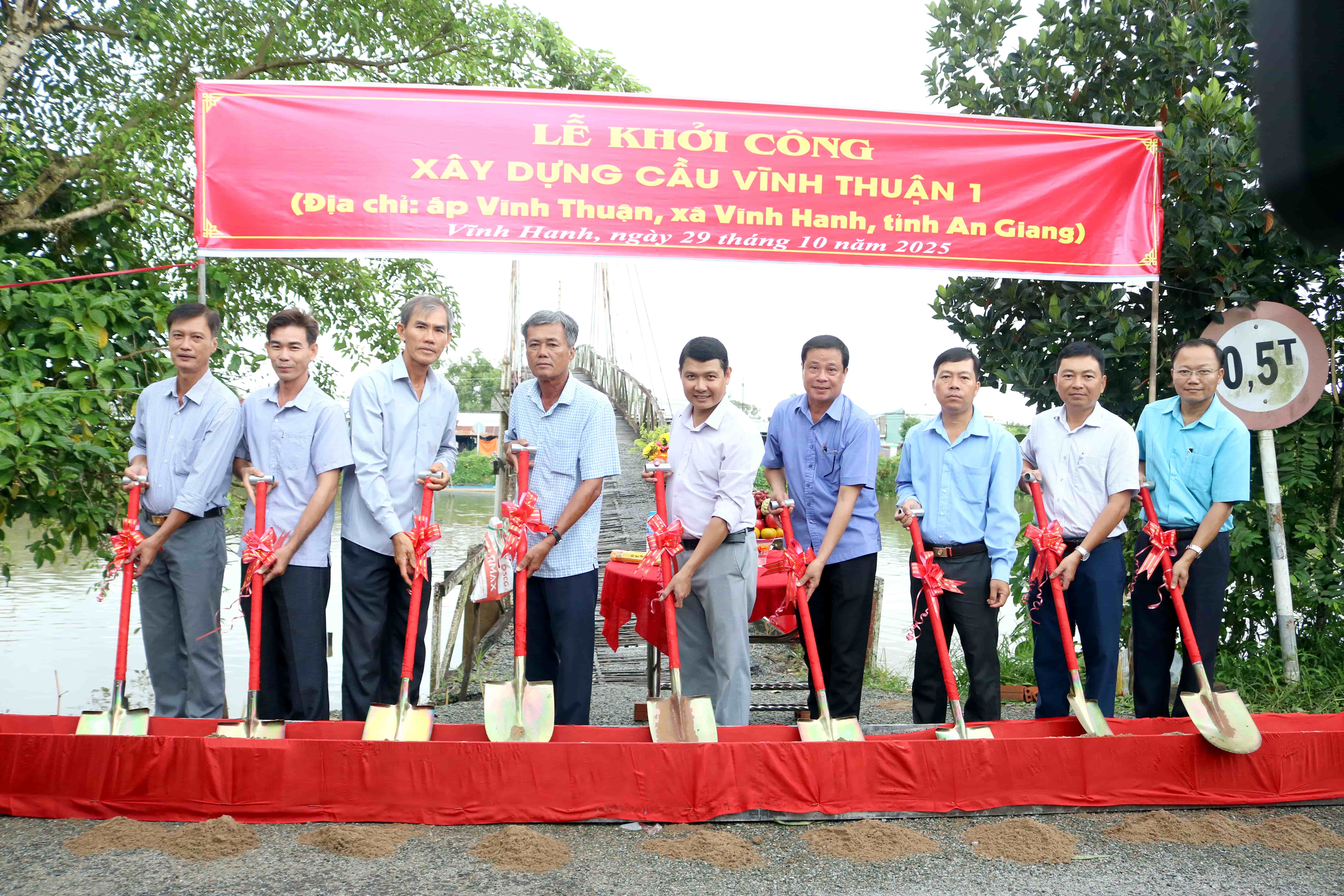 Ngày 29-10-2025, Đảng ủy, UBND xã Vĩnh Hanh tổ chức Lễ khởi công xây dựng cầu Vĩnh Thuận 1, thuộc ấp Vĩnh Thuận. Đồng chí Hồ Trường Huấn – Bí thư Đảng ủy, Chủ tịch HĐND xã Vĩnh Hanh; Đồng chí Đoàn Đức Dịnh – Phó Bí thư Đảng ủy, Chủ tịch UBND xã Vĩnh Hanh; Cùng các đồng chí trong Ban Thường vụ Đảng ủy; Ban ngành, Đoàn thể và Nhân dân tham dự.