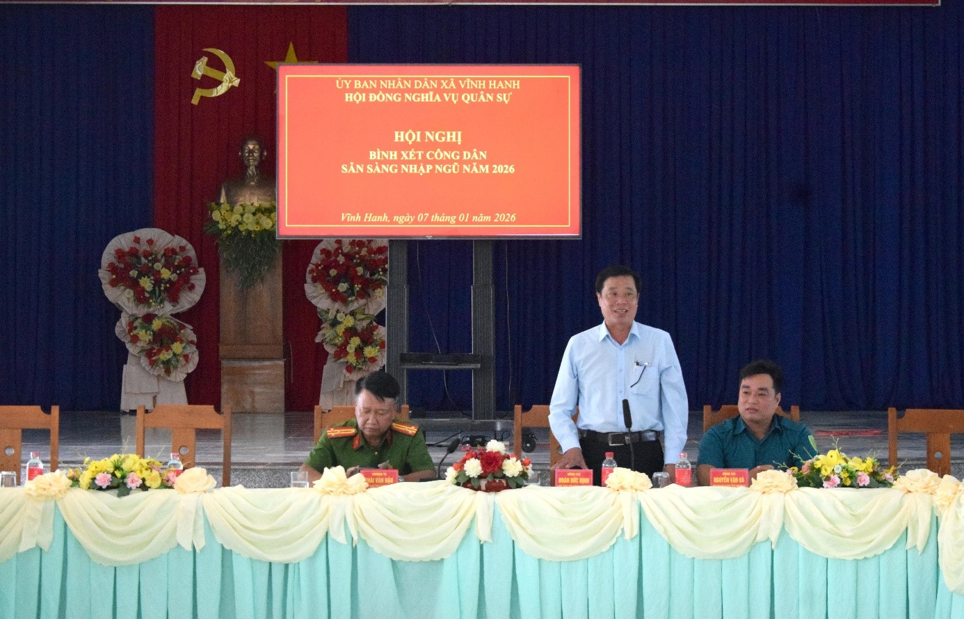 Ngày 07-01-2026, Hội đồng Nghĩa vụ Quân sự xã Vĩnh Hanh tổ chức Hội nghị bình xét công dân sẵn sàng nhập ngũ năm 2026. Ông Đoàn Đức Dịnh – Phó Bí thư Đảng ủy, Chủ tịch UBND xã Vĩnh Hanh, Chủ tịch Hội đồng NVQS xã; Ông Nguyễn Văn Đà - Ủy viên Ban Thường vụ Đảng ủy, Chỉ huy trưởng Ban Chỉ huy Quân sự xã Vĩnh Hanh, Phó Chủ tịch Thường trực Hội đồng NVQS xã; Thượng tá Thái Văn Hậu - Ủy viên Ban Thường vụ Đảng ủy, Trưởng Công an xã Vĩnh Hanh - Phó Chủ tịch Hội đồng NVQS xã đã đến dự.