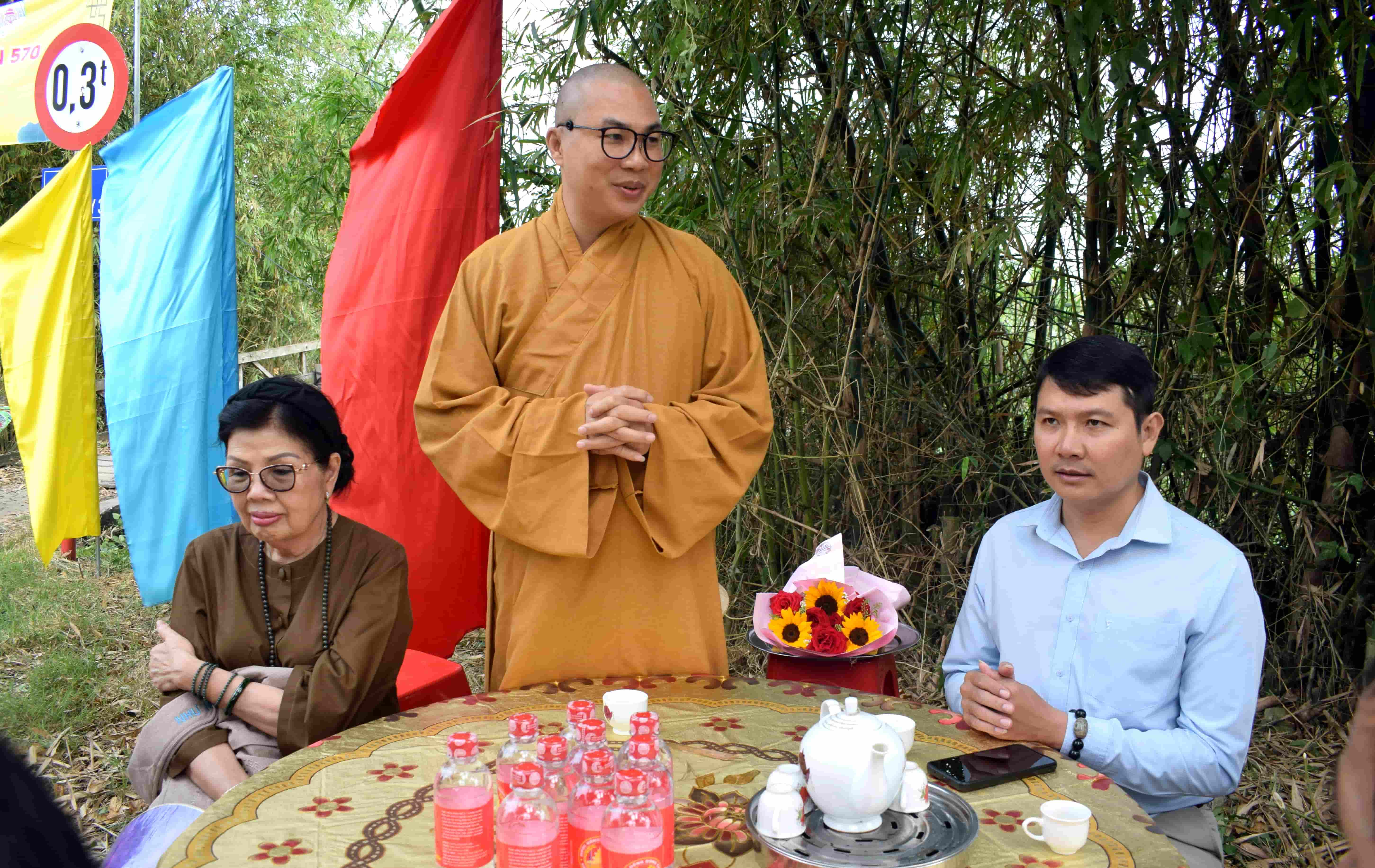 Thượng tọa Thích Minh Phú - Ủy viên Hội đồng Trị sự Trung ương, Phó Ban Thường trực Ban Từ thiện Xã hội Phật giáo TP. Hồ Chí Minh, Trụ trì chùa Tường Nguyên phát biểu tại buổi Lễ.