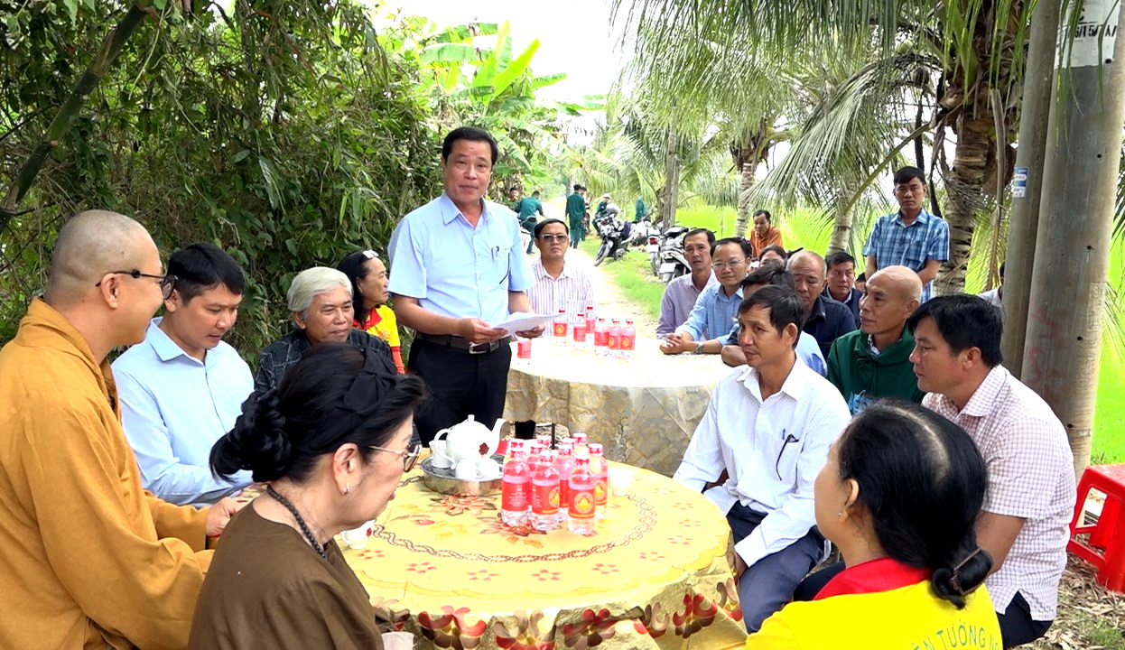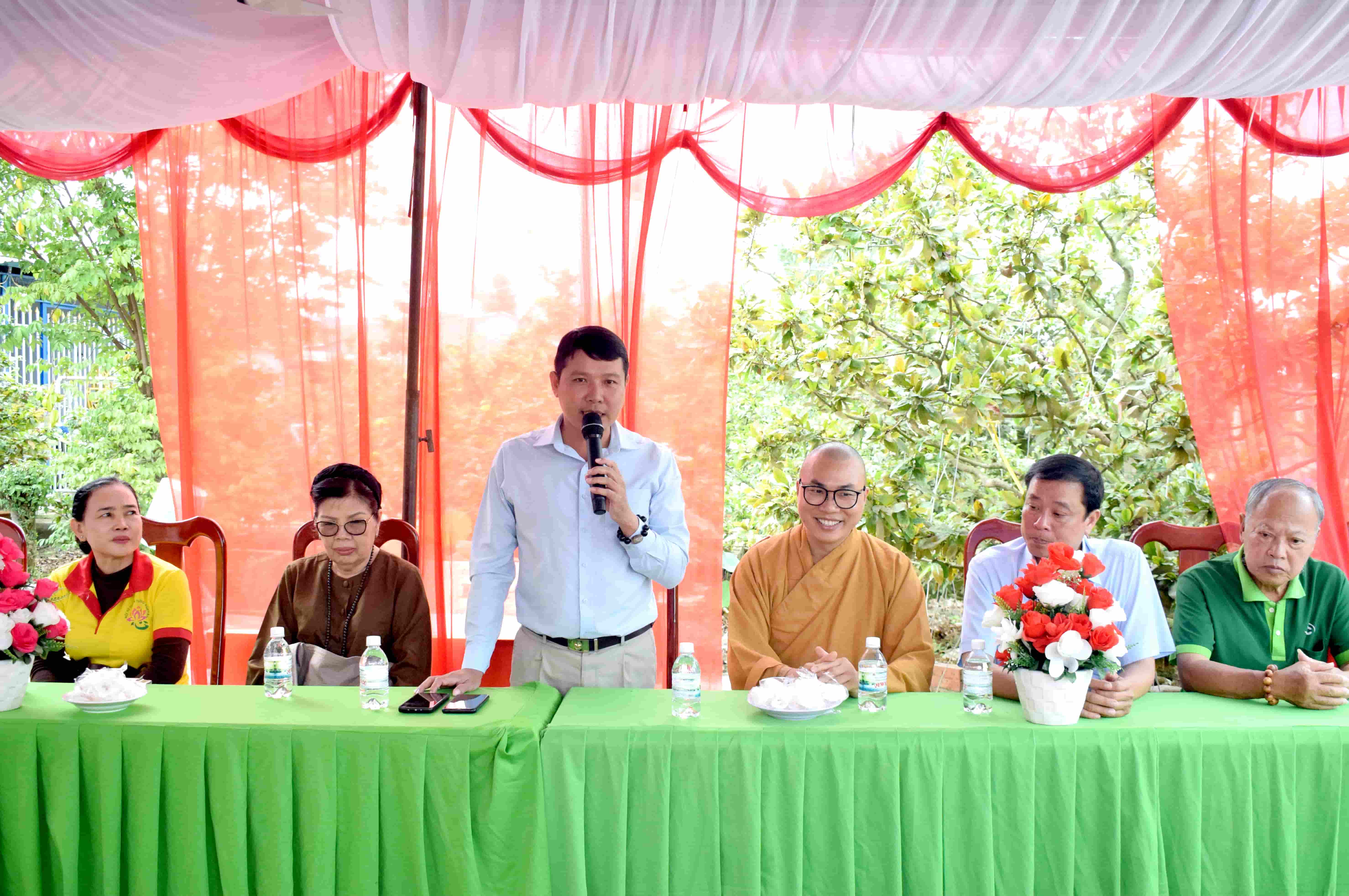 Ông Hồ Trường Huấn – Bí thư Đảng ủy, Chủ tịch HĐND xã Vĩnh Hanh phát biểu đáp từ và bày tỏ sự tri ân sâu sắc đối với Hội Từ thiện chùa Tường Nguyên – TP. Hồ Chí Minh.