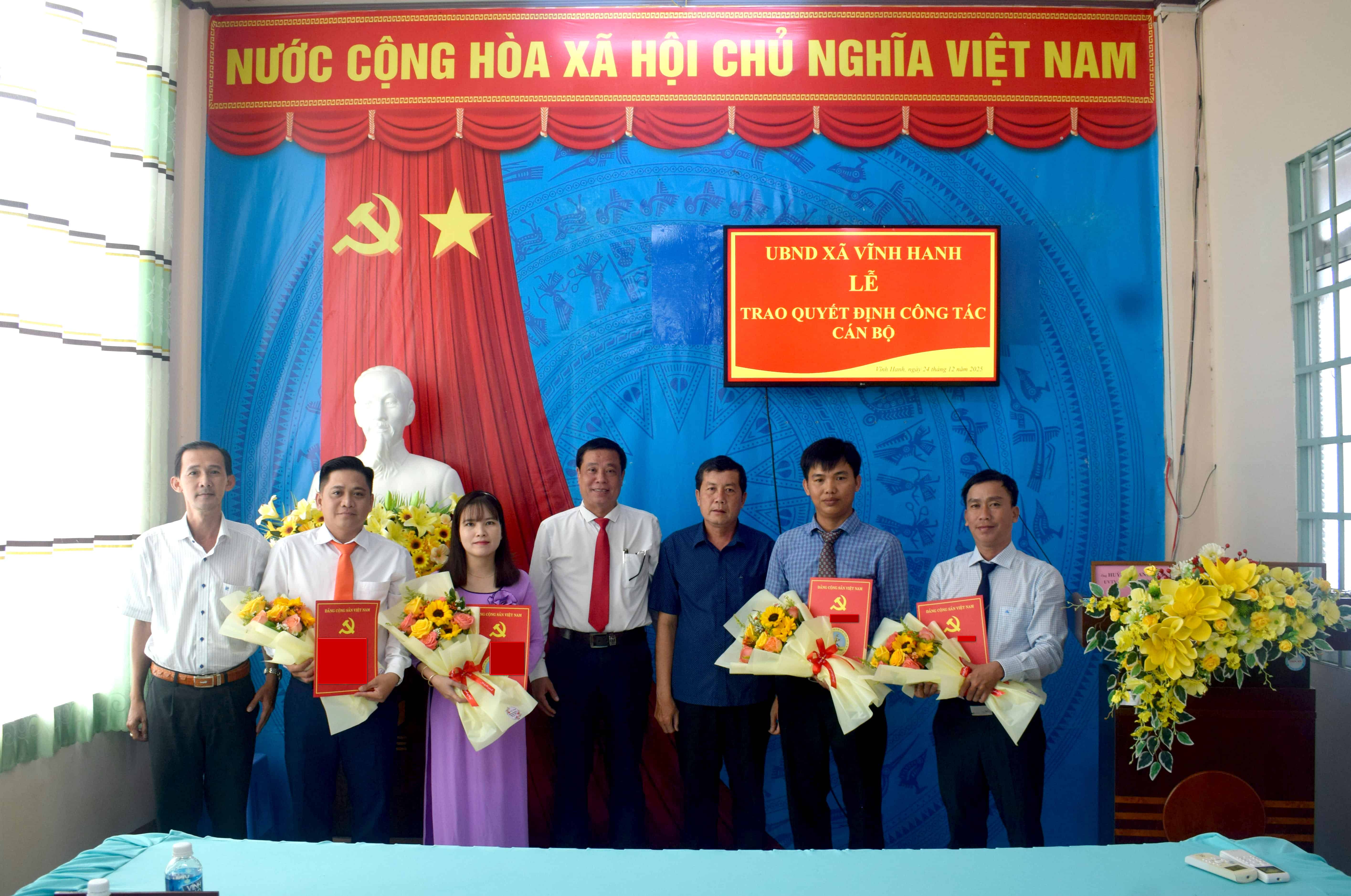 Song song đó, Chủ tịch UBND xã Vĩnh Hanh còn trao các Quyết định công tác cán bộ gồm: Quyết định phân công ông Nguyễn Văn Trọng công tác tại Phòng Kinh tế xã Vĩnh Hanh, nhiệm vụ cụ thể do Thủ trưởng đơn vị phân công; Quyết định phân công bà Nguyễn Thị Kim Thanh công tác tại Văn phòng HĐND và UBND xã Vĩnh Hanh, nhiệm vụ cụ thể do Thủ trưởng đơn vị phân công; Quyết định điều động ông Nguyễn Trung Thành – công chức Trung tâm Phục vụ Hành chính công xã Vĩnh Hanh đến nhận công tác tại Văn phòng HĐND và UBND xã Vĩnh Hanh, nhiệm vụ cụ thể do Thủ trưởng đơn vị phân công.